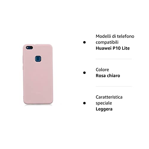 Cuzz Cover per Huawei P10 Lite+(1 pezzi proteggi schermo in vetro temperato) tinta unita premium flessibile in silicone TPU custodia sottile ultra leggera antiscivolo anti-shock housse(rosa chiaro)