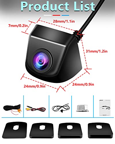 Aggiornata HD 720P Retrocamera Auto: Telecamera retromarcia supporta commutazione segnali video CVBS e AHD. Telecamere retromarcia auto con funzione capovolgimento dell'immagine e grandangolo 140°,è molto adatta come telecamera per visione anteriore o posteriore,fornire l'immagine HD,riducendo i punti ciechi nel campo visivo,guida più sicura. Telecamera posteriore con angolo di montaggio regolabile con 4 distanziali è adatta per veicoli DC-12V, come auto, pickup, furgoni, rimorchi e camper, ecc.