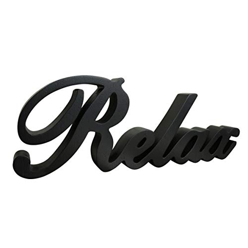 CVHOMEDECO. Cartello con parole in legno nero opaco Indipendente "Relax" Scrivania/Tavolo/Mensola/Muro di casa/Ufficio Decorazione Art, 30,5 x 10,4 x 2,5 cm