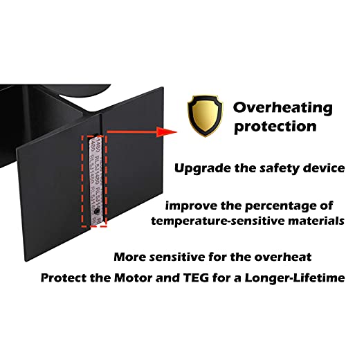 【Più lunga durata】 Ventola per stufa a legna aggiornata 2021, sistema di protezione contro il surriscaldamento integrato, se la temperatura della superficie supera circa 300 ℃, il dispositivo di sicurezza solleva delicatamente la parte anteriore della ventola, per evitare danni al TEG e al motore per una maggiore durata.