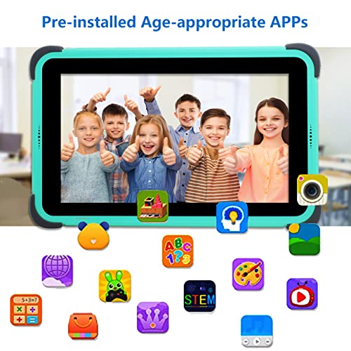 CWOWDEFU Tablet per bambini da 7 pollici Android Tablet PC 2024 Tabletas 32 GB WiFi Kids Tablet per Bambini 3 a 6 anni (verde)