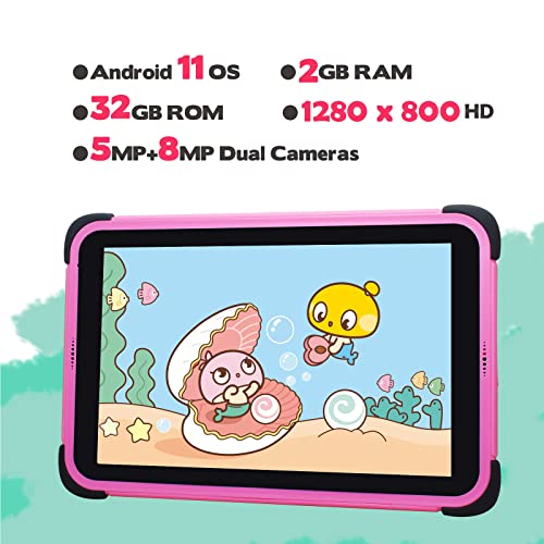 CWOWDEFU Tablet per bambini 8 pollici con Android 11, 32 GB, controllo parentale, 4500mAh, Wifi, istruzione, Kids Tablet bambini con custodia (Rosa)