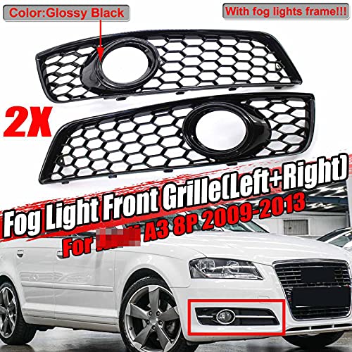 CWTSDSG 2PCS Paraurti Anteriore per Auto Fendinebbia Lampada a Nido d'Ape Griglia a Nido d'Ape Griglia a Rete. per Audi A3 8P 2009-2013