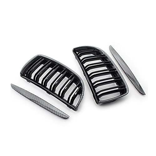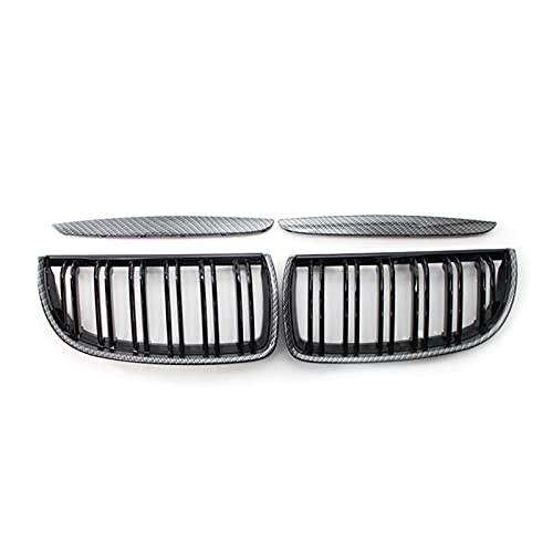 CXBING Griglie da Anteriore Grille Rene Griglie - Doppia Linea Fit -Fit for BMW E90 323I 328I 335I 330I 325I 3- Serie 2005-2008 Fibra di Carbonio Addominali Griglia Anteriore per Auto