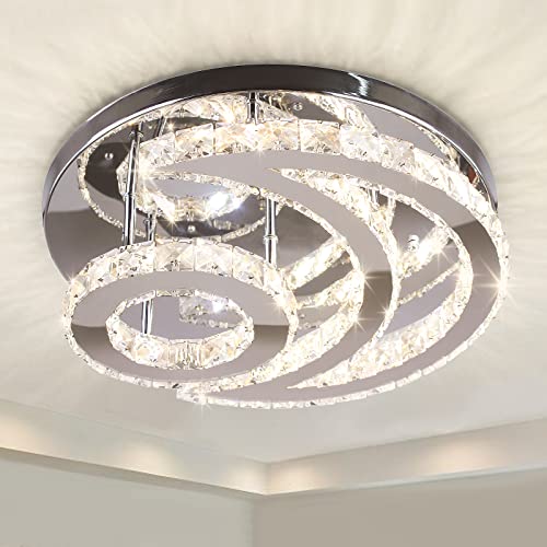 CXGLEAMING 15.7" moderna lampadario da soffitto plafoniera a LED di cristallo luna rotonda lampada a sospensione da incasso per soggiorno camera da letto cucina(3 Colore modificabile)