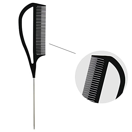 CXHM Pettine con Punta ad ago in Acciaio Antistatico, Pettine per Capelli con evidenziazione, Pettine con Coda a Spillo, Pettine(Black)