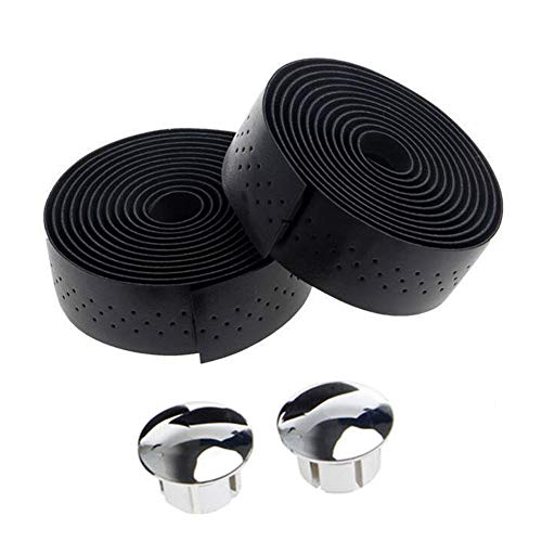 CxIACom - Nastro adesivo in finta pelle per manubrio della bicicletta, con 2 tappi - nero