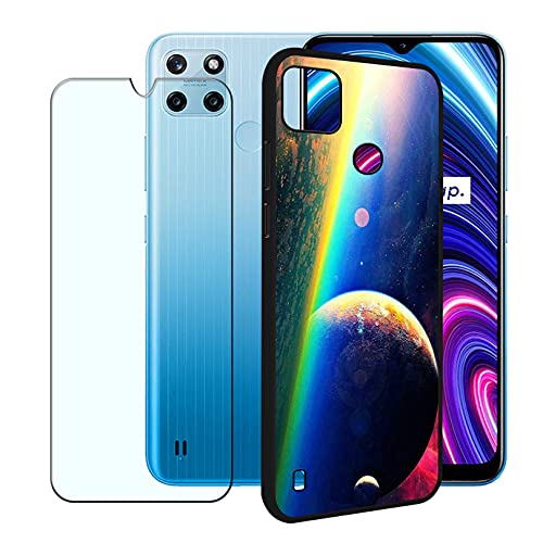 CXKJ Custodia per Realme C25Y (6.50 Pollice) Nero Cover + Pellicola Vetro Temperato, Morbido Silicone Custodie Protettivo TPU Gel Cover Protezione Slim Anti Case per Realme C25Y - CX26