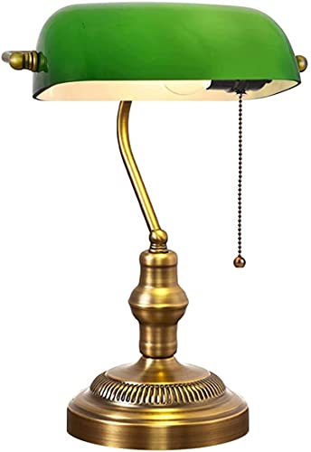 CXSMKP Lampada da Tavolo Retro, Studio Lampada da Scrivania/Lampada da Banco/Lampada da Ufficio con Interruttore a Strappo, Paralume in Vetro Bianco e Base in Ottone
