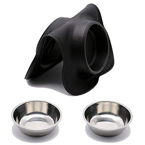 Cxssxling Ciotole per Gatti Cani, Doppie Ciotole per Gatti con Scodella in Acciaio Inox Rimovibili con Vassoio Antiscivolo in Silicone Bonus Ciotola per Cane Pieghevole, 2 * 200ml