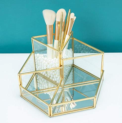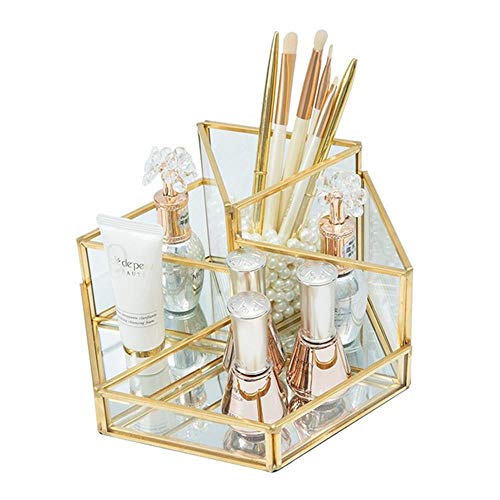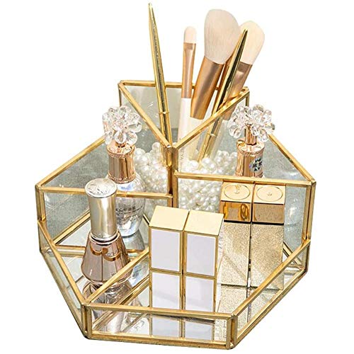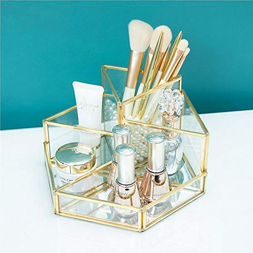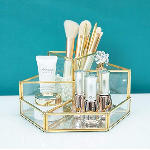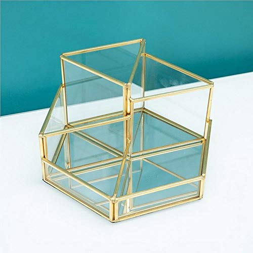 Cxssxling Contenitori per Cosmetici Glass Cosmetic Organizer Trasparente Cosmetic Box Make up Organizer Beauty Organizer Vassoio Portaspazzole Gioielli Porta Trucco Oro Vassoio Decorativo