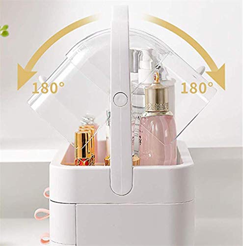 Organizzatore Per Cosmetici Con 2 Cassetti Organizzatore Di Trucco Grande Capacità Con Manico Organizer Trucchi Multifunzione Girevole A 180° Per Cosmetici Gioielli E Accessori (Rosa)