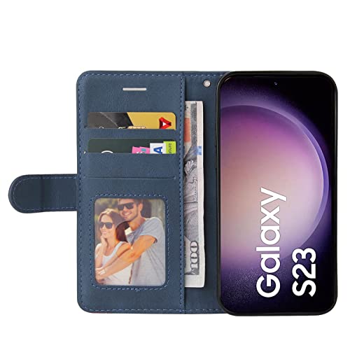 CXTcase Custodia Samsung Galaxy S23,Flip Wallet Case, Cover per Samsung Galaxy S23,Protettiva Caso in PU Pelle Portafoglio Custodia con Magnetica a Scatto per Samsung Galaxy S23,Blu