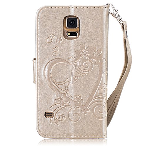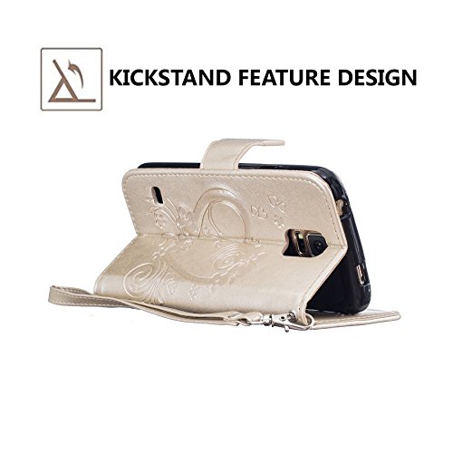 CXTcase Samsung S5 Custodia, Galaxy S5 Neo Cover Flip Caso in Pelle Portafoglio Protettiva Custodia per Samsung Galaxy S5 / S5 Neo Fiore Farfalla Oro