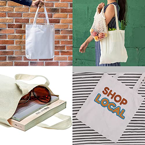 CXtech 3 pezzi Borse per la spesa in cotone naturale tinta unita Tote in tela di cotone Borse per la spesa riutilizzabili Ecologiche Super resistenti lavabili Ideali per la stampa e il ricamo