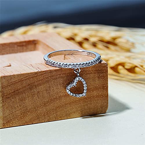 CXWK Anello di Fidanzamento in Argento Color Oro Rosa con Cuore d'Amore Femminile alla Moda Anello di Fidanzamento in Pietra di Cristallo Bianco Delicato per Le Donne