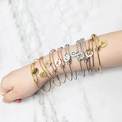 CXWK Bracciale in Acciaio Inossidabile AZ Disco con Lettera Iniziale Alfabeto Braccialetto con ciondoli da Donna Braccialetti espandibili con Cavo Avvolgente