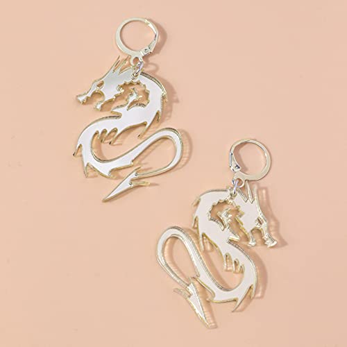 CXWK Orecchini a Forma di Drago in Acrilico in Metallo Stile Cinese Punk Freddo Oro Argento Colore Superficie a Specchio Orecchini Pendenti Animali per Gioielli da Donna