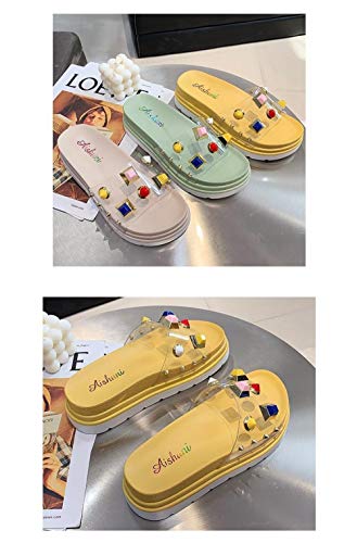 Cxypeng Platform Sandalo Eleganti Plateau,Sandali e Ciabatte da Donna Strass Fondo Piatto Trasparenti, Scarpe da Spiaggia in PVC-Beige_38,Sandali Fitness da Massaggio