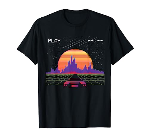 Cyberpunk outrun synthwave tramonto veloce auto estetica t shirt Maglietta