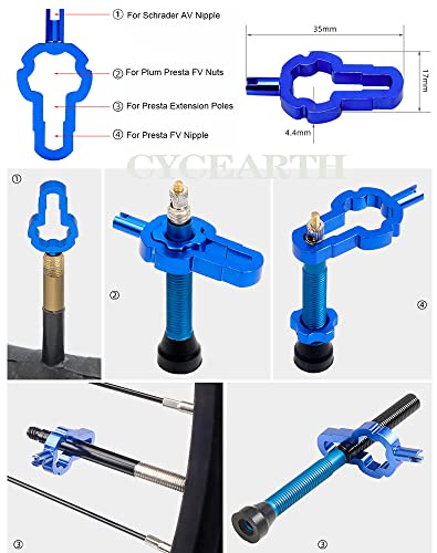 CYCEARTH 10 Pezzi Presta/Schrader Valve Core, 4 Pezzi In Lega di Valvola del Pneumatico, 4 IN 1 Strumento di Rimozione, Cerchio di Conversione Dado Per Tubeless Strada/MTB Della Bici