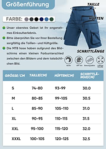 Materiali molto durevoli ed elastici: il materiale utilizza il 92% poliestere e l'8% elastan, leggero ed elastico, che è durevole e affidabile. Con il loro design elastico, i pantaloni MTB da uomo sono larghi e comodi, per tutti i tipi di ciclismo.