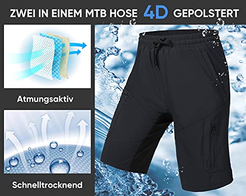 Cycorld - Pantaloni da uomo con imbottitura 4D, per mountain bike, da uomo, con seduta imbottita, traspiranti, per mountain bike, da uomo, da mountain bike, Nero, L