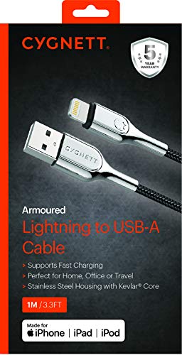 Cygnett - Cavo Armoured da Lightning a USB-A - Lunghezza 1 metro - Nero