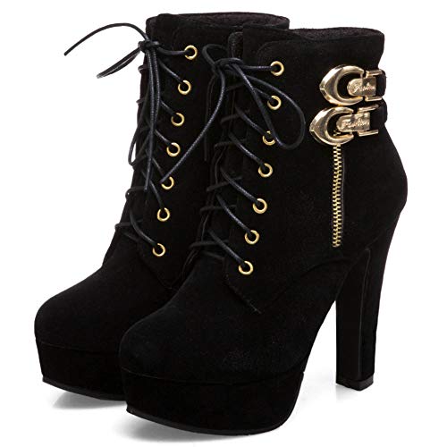 Cynllio Moda Chunky tacchi alti stivaletti alla caviglia per le donne pizzo piattaforma fibbia inverno combattimento stivali punk stivali, 6 nero, 41 EU