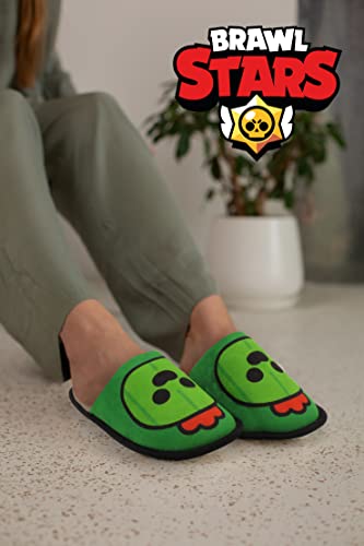 CYPBRANDS Brawl Stars - Pantofole da casa aperte, design a spillo, morbide, misura 40/41, colore verde e giallo, prodotto ufficiale (CyP Brands)