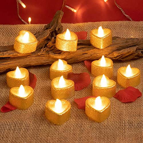 Cyrank 6 lumini a LED, Candele a lume di Candela tremolanti Senza Fiamma a Forma di Cuore a Batteria, centrotavola, Decorazioni da tavola per Decorazioni per Feste di Matrimonio