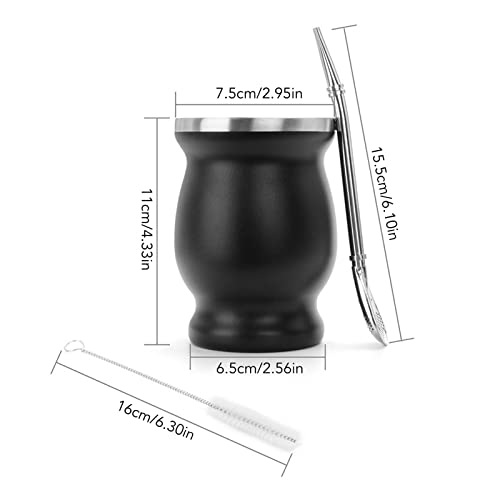 Cyrank Set di Tazze Yerba Mate, Tazza da Tè in Acciaio Inossidabile con Cannuccia E Spazzola Per La Pulizia Tazza da Caffè con Isolamento Termico Durevole Per La Preparazione del Tè