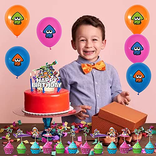 CYSJ Compleanno Decorazioni, Decorazioni per Feste di Compleanno, Decorazione a tema Splatoon, Buon Compleanno Bandierine, Decorazione Festa di Compleanno per Bambini Kit, Cake Topper
