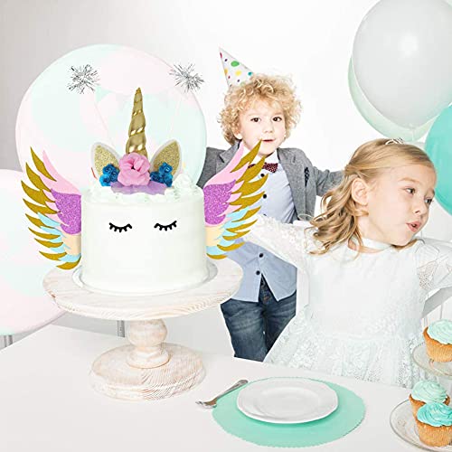 CYSJ Unicorno Decorazioni Torte Unicorn Cake Topper Set con Ali Decorazioni per Feste di Compleanno/Matrimonio/Vacanza, Carina Unicorno Horn Ala e Ciglia