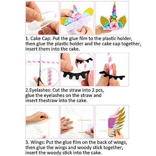 【Divertente fai da te con i bambini】 Questo set di decorazioni per torte di compleanno è molto facile da assemblare, i tuoi bambini apprezzeranno la grande felicità di fai da te una torta di compleanno unicorno carina con te.