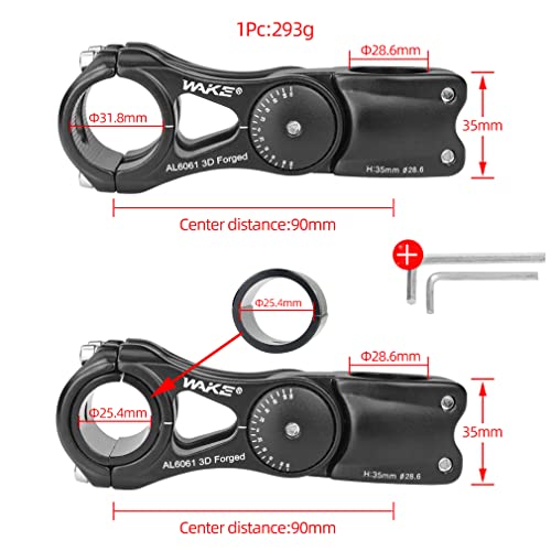 CYSKY Attacco Manubrio Bici Universale 31,8mm e 25,4mm Regolabile ± 90 Gradi 90mm 110mm 145mm MTB Attacco Manubrio Corto Attacco Manubrio per Mountain Bike Bici da Strada BMX Bici da Città (90mm)