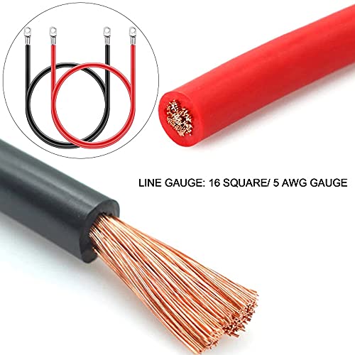 CYUaoao 2Pz Cavi Inverter Batteria in Ottone 50cm Cavo del Veicolo con Occhielli Cavo in Rame per Auto Cavo di Alimentazione Kit Cavo Batteria Rosso e Nero 5AWG