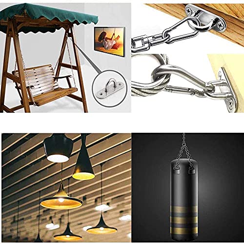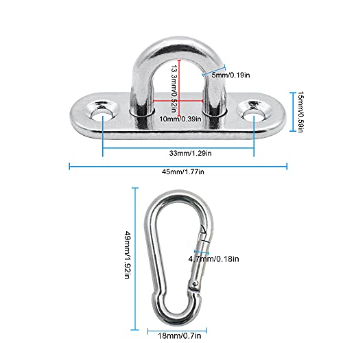 CYUaoao 6Pz Piastre per Occhielli in Acciaio Inox con 6 pz Moschettone Ganci Placca Oculare M5 Gancio da Muro Piastra con Occhiello per Sedie Sospese Tenda da Sole con Viti