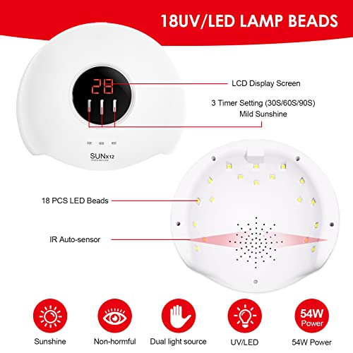 Czemo Asciuga Unghie e Lampada gel UV per Unghie,54W Lampada Unghie UV LED con Sensore Automatico e 3 Timers 30s/60s/90s,18 Perline Lampada,Lampada Unghie Professionale per Manicure a Casa