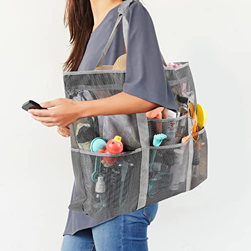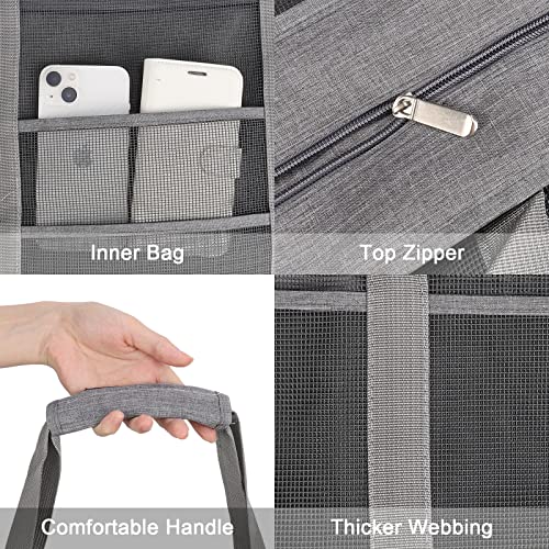 Czemo Borsa Mare Donna Rete Grande,Borsa Rete Portatile con Cerniera La Borsa Spiaggia da Rete Anti-sabbia in Tessuto a Rete Pieghevole e Riutilizzabile,per Sabbia Nuotare Giocattoli Bambini (Grigio)