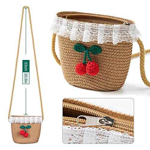 Czemo Cappello da Sole in Paglia Bambino da Spiaggia Estivo e Mini Set Ragazze da Spiaggia Estivi Fiori Berretto Protezione UV 3-7 Anni (Beige) (Café)
