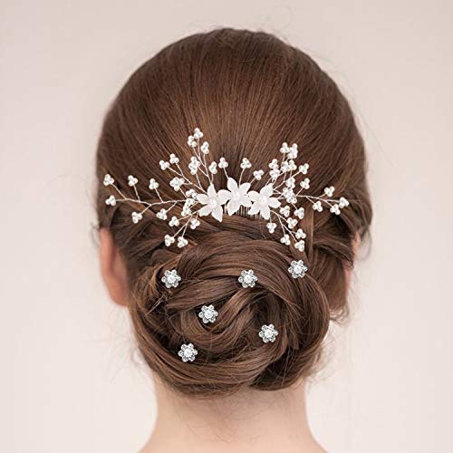 Czemo 9 pezzi Forcine per Capelli Perle Fermaglio a Pettine Sposa Forcine Fermagli Spirali per Capelli con Strass Cristalli Perni di Capelli Nuziali