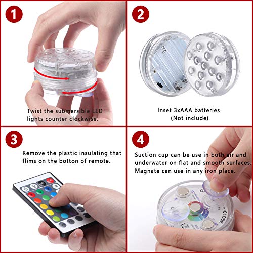 Czemo 4 Pezzi Luce Subacquea a LED, Luce Sommergibili Con Telecomando, 13 LEDs Luce Impermeabile RGB Piscina, per Vasi, Giardino, Acquario, Stagno, Piscina, Feste (01)
