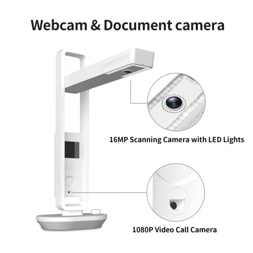 Con fotocamera secondaria per videochiamate: lo scanner per documenti CZUR Aura Mate Pro dispone di un sistema a doppia fotocamera, con fotocamera da 16 MP (4608 x 3456, 250 DPI) + fotocamera frontale da 2 MP, che lo rende lo strumento perfetto per riunioni di lavoro, lezioni online e lavoro da casa