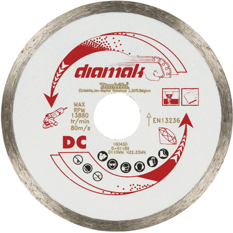 MAKITA D-61189 Disco diamantato DIAMAK continuo 115 mm Disco diamantato Diamak continuo 115 mm Compatibilità Diametro esterno - 115 - mm< br />Diametro interno - 22,23 - mm