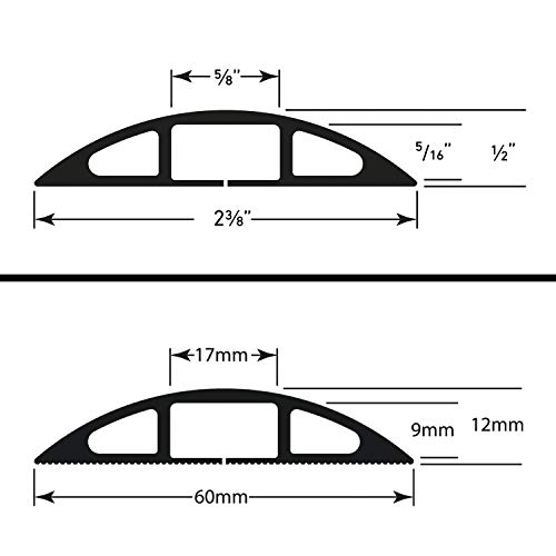 D-Line CC-1 Canalina Pavimento, Canalina Cavi, Canalina Passacavi Calpestabile, Passacavo a Pavimento - Cavità per cavi = 17mm (Larghezza) x 9mm (Altezza) - 1,8m Lunghezza - Nero