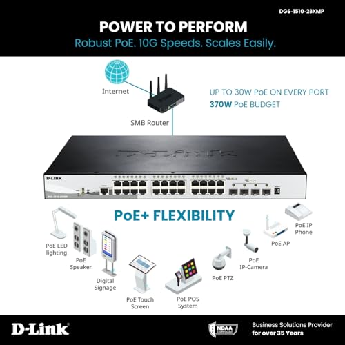 D-Link DGS-1510-28XMP Switch Smart Managed Gigabit per Stack da 28 Porte di cui 24 PoE e 4 10G SFP+