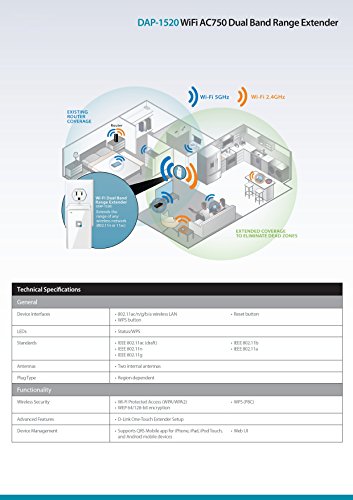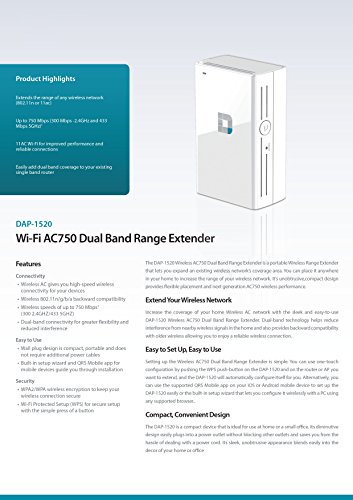 D-Link Wireless AC750 Dual Band Range Extender, DAP-1520_E (Range Extender)