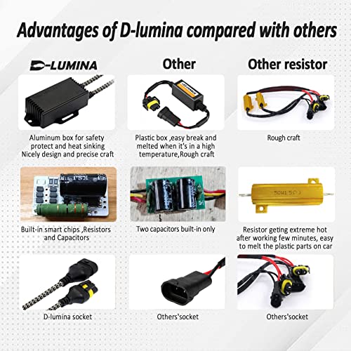Funzioni: le lampadine richiedono resistenze D-Lumina extra per evitare che le domande sfarfallio, dimmer, interruttore abbagliante e anabbagliante, le luci non si accendono, un faro è più luminoso dell'altro.