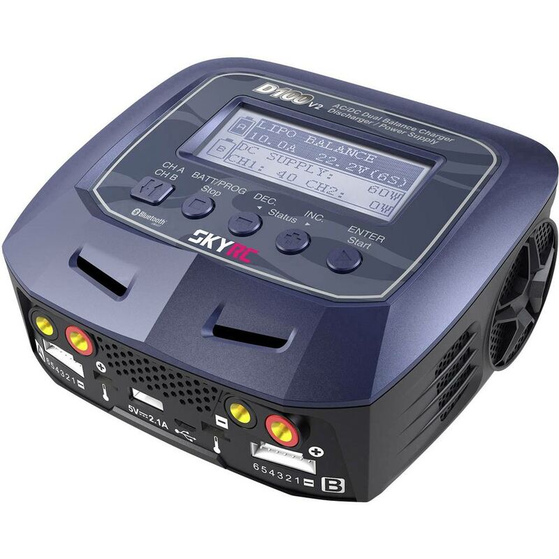 Dettagli tecnici Accumulatore adeguato LiPo, LiFePO, LiIon, LiHV, NiMH, NiCd, Piombo Corrente di carica (max.) 10 A Dimensione del prodotto, larghezza 140 mm Dimensione del prodotto, lunghezza 153 mm Dimensioni (L x L x A) 153 x 140 x 67 mm Dimensioni prodotto Altezza 67 mm Peso 670 g Tipo prodotto Caricabatterie multifunzione per modellismo Caricatore multifunzione D100 Mini V2 SKYRC D100 v2 è un caricabatterie a 2 canali con 2 uscite indipendenti per la ricarica di diverse tecnologie di celle (Lipo/LiHV/LIFE/Lilon/NiMH/NiCd/PB). L'uso aggiuntivo come alimentatore con una potenza di uscita massima di 100 W apre nuove possibilità al costruttore di modelli. L'uscita vocale senza precedenti rende il funzionamento ancora più semplice. È stata integrata anche la nuova funzione Scan to Go. La rivoluzionaria funzione Scan to Go offre una soluzione che consente di associare a ogni batteria il proprio codice QR. In questo codice QR sono memorizzati tutti i parametri rilevanti per la ricarica